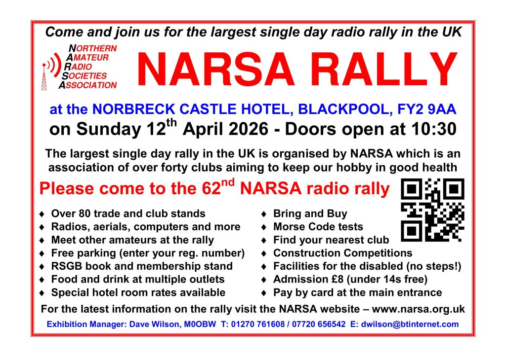 The NARSA Wash Up Meeting takes place on Wednesday 21st May 2025 at 20:00.  This is a virtual online Zoom meeting. Details are on your emails